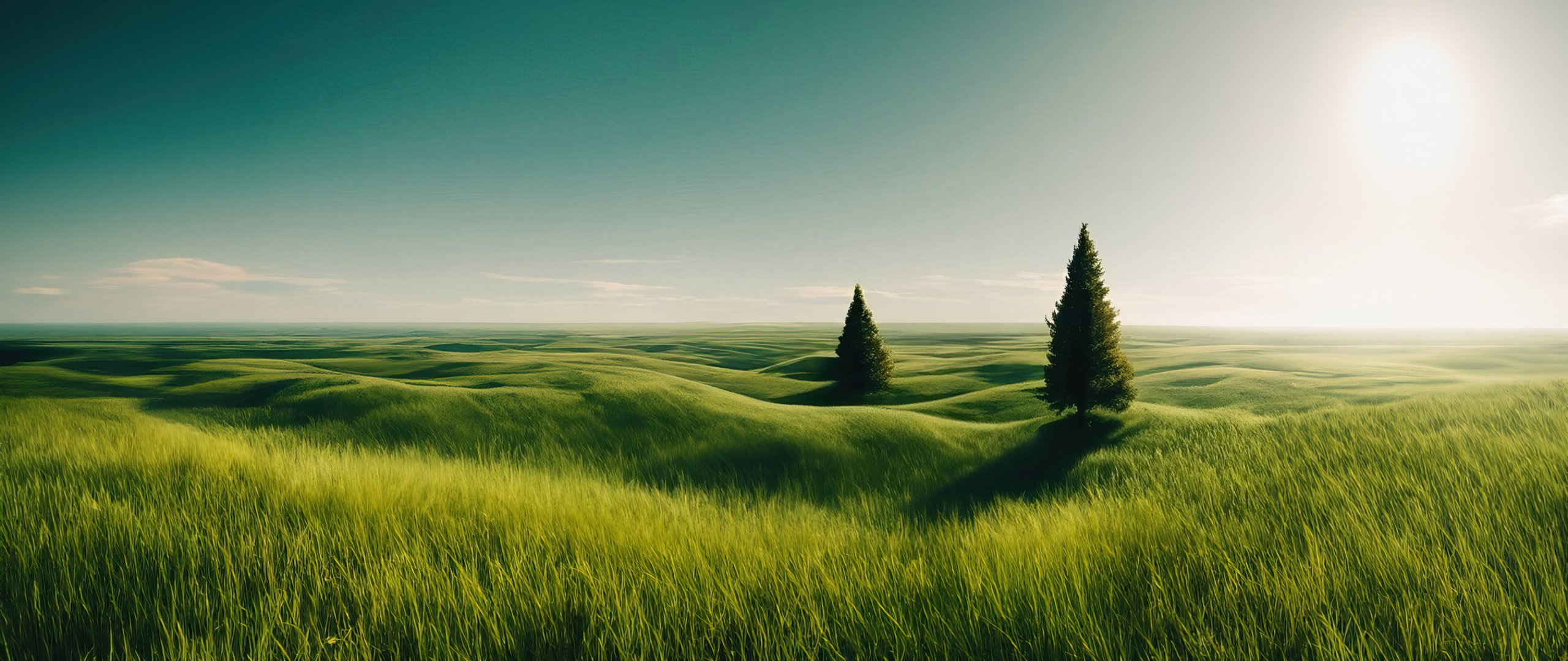 Wallpaper: landscape, field, horizon, grass - 2560x1080