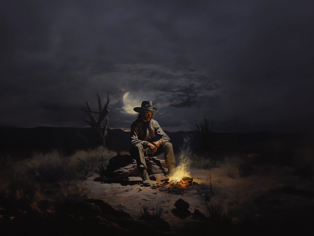 Wallpaper: Wild West, cowboy, night, bonfire - 1024x768