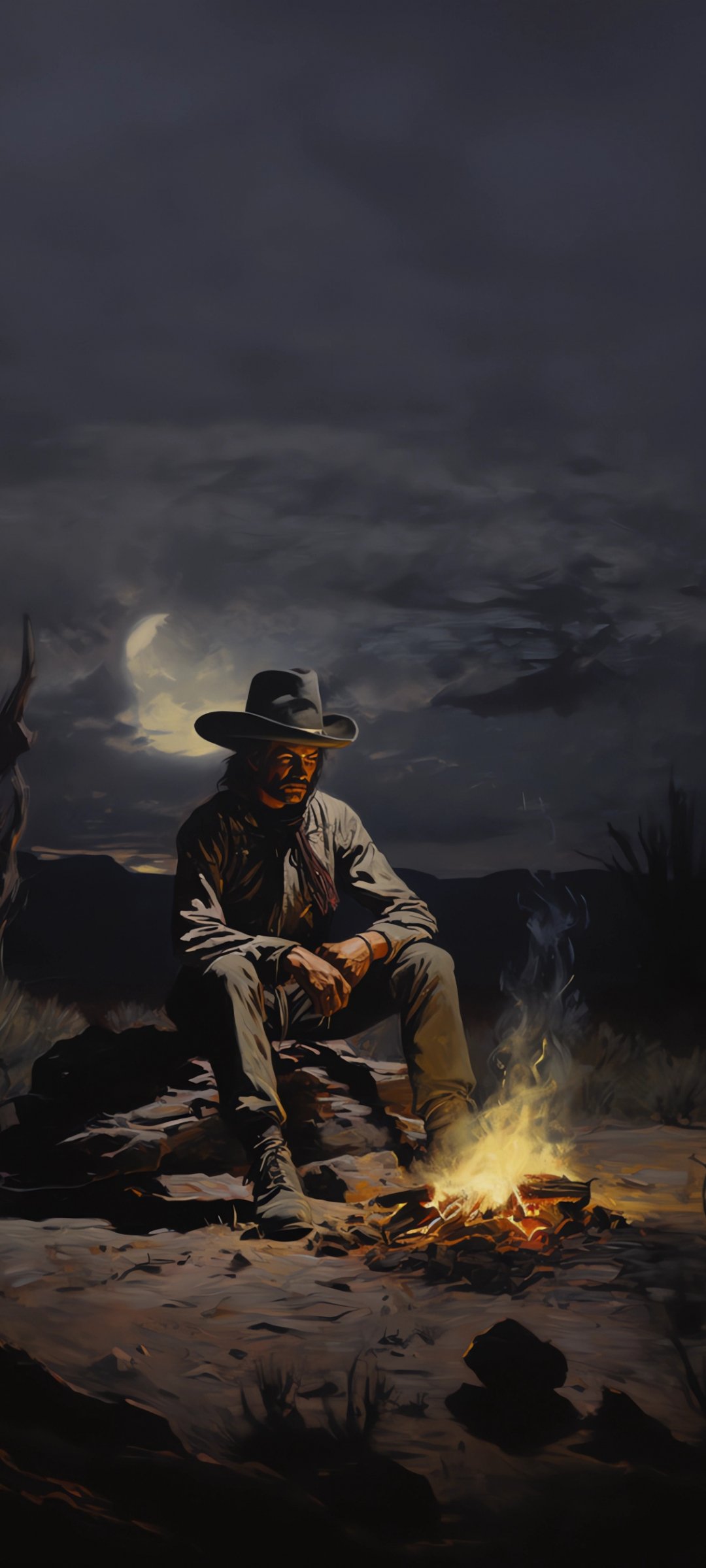 Wallpaper: Wild West, cowboy, night, bonfire - 1080x2400