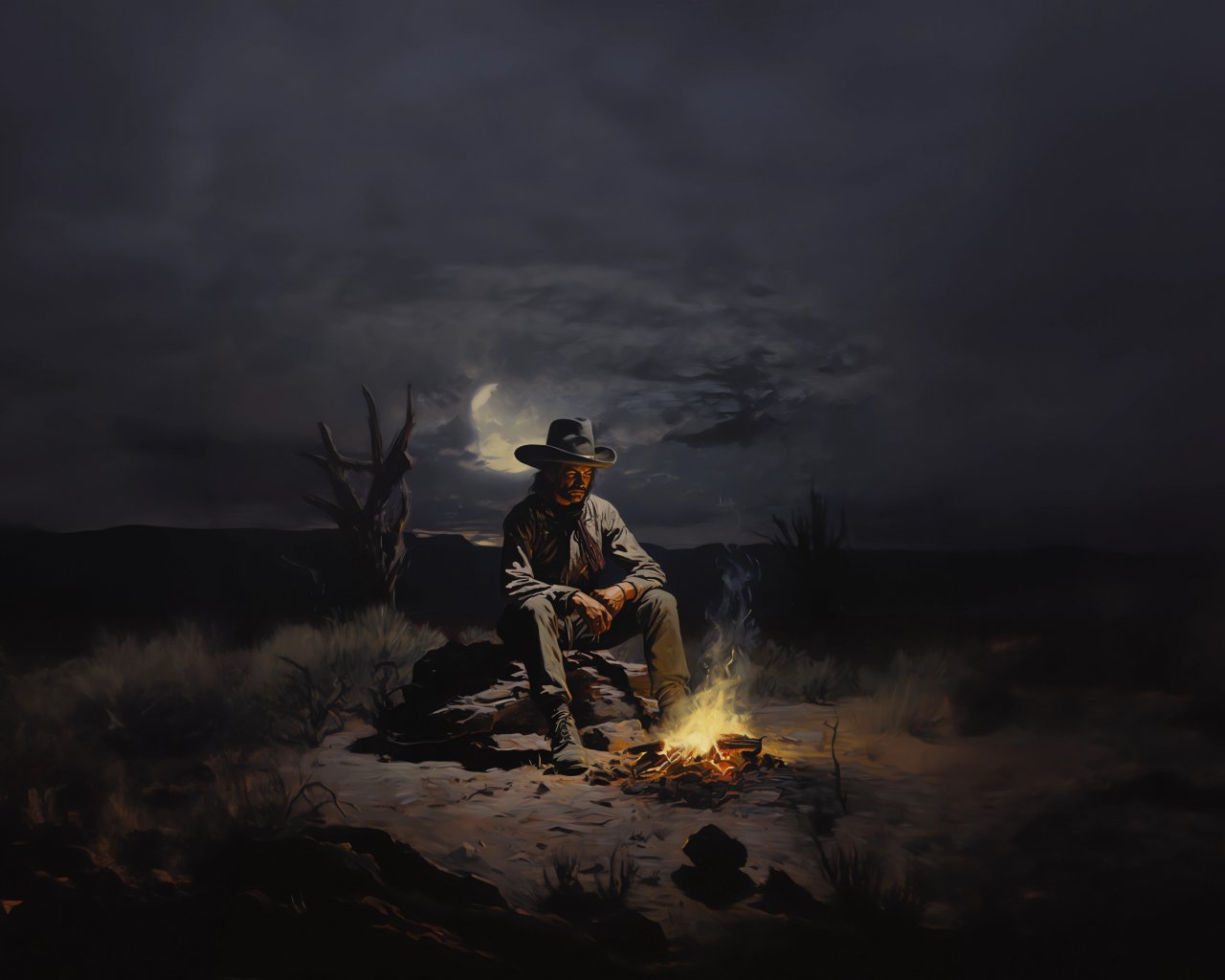 Wallpaper: Wild West, cowboy, night, bonfire - 1280x1024