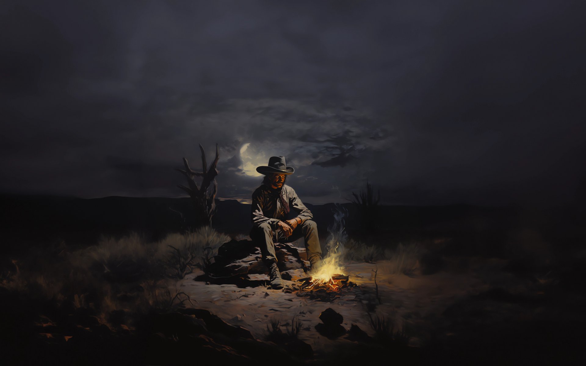Wallpaper: Wild West, cowboy, night, bonfire - 1920x1200