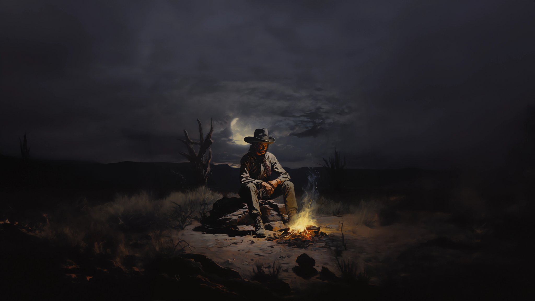 Wallpaper: Wild West, cowboy, night, bonfire - 2048x1152