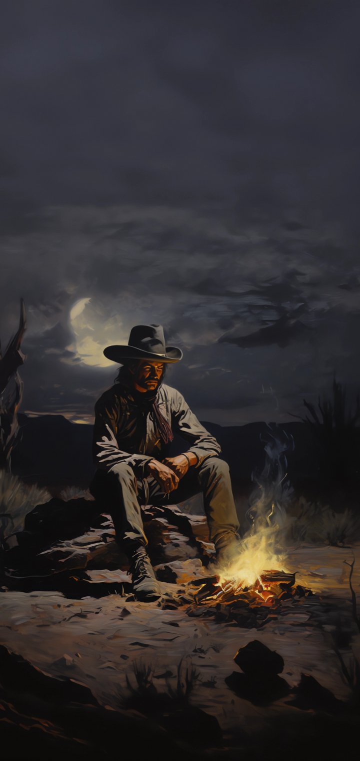 Wallpaper: Wild West, cowboy, night, bonfire - 720x1520