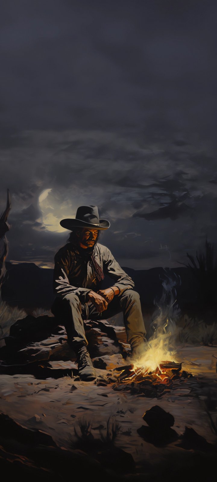 Wallpaper: Wild West, cowboy, night, bonfire - 720x1600