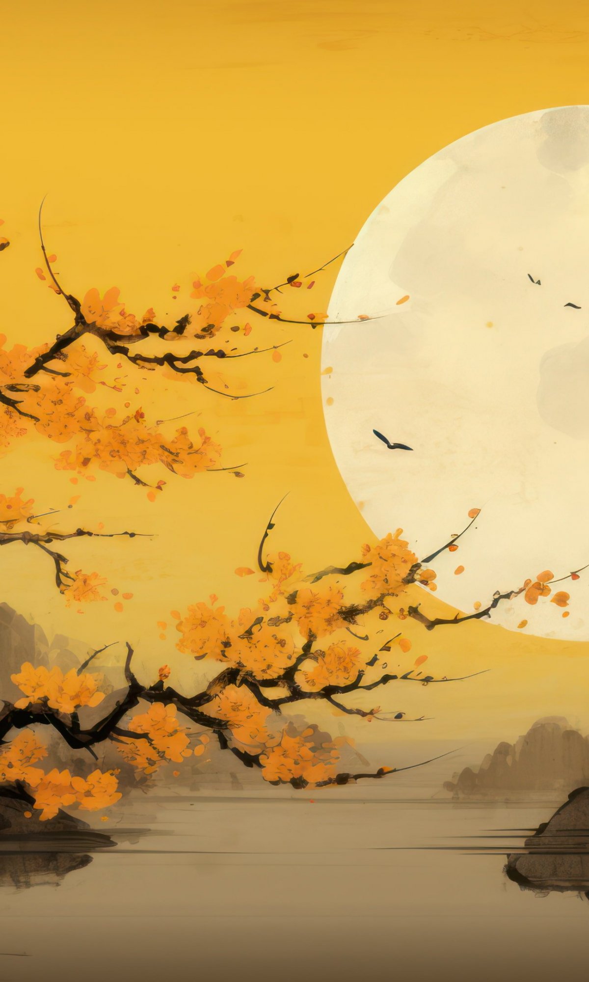 Wallpaper: moon, yellow, japan, landscape - 1200x2000