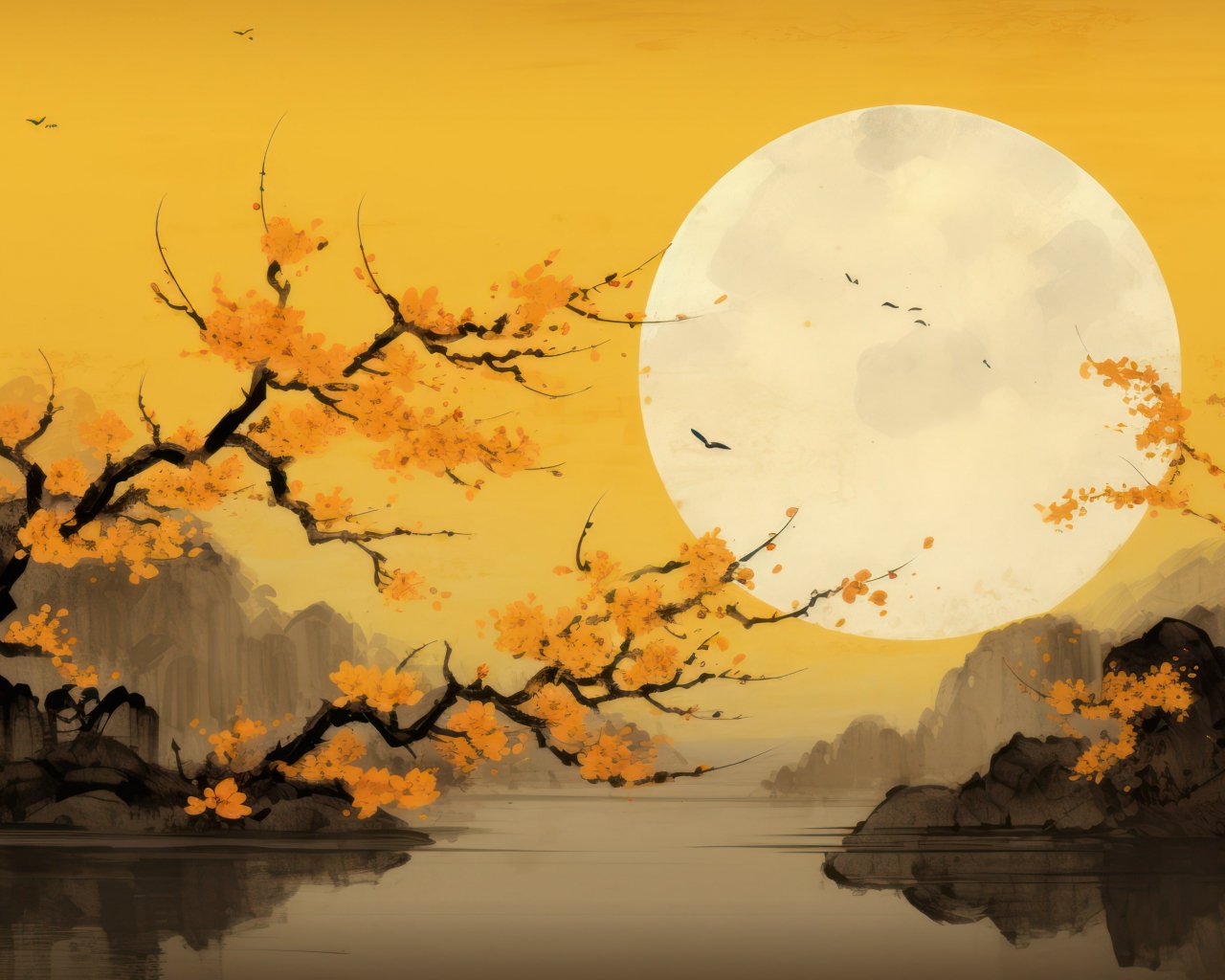 Wallpaper: moon, yellow, japan, landscape - 1280x1024