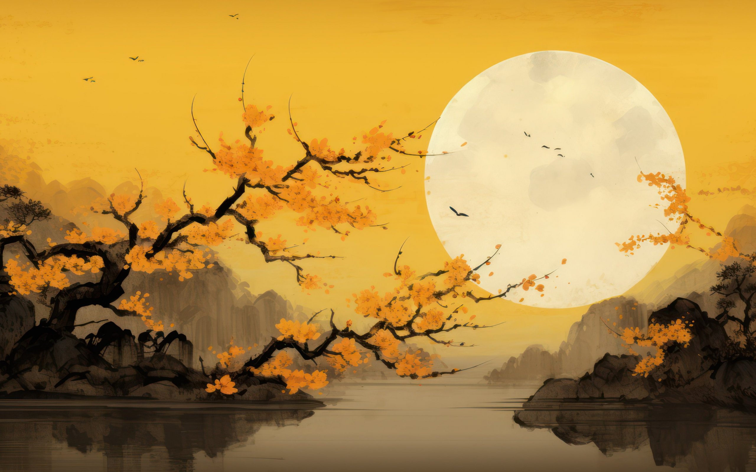 Wallpaper: moon, yellow, japan, landscape - 2560x1600