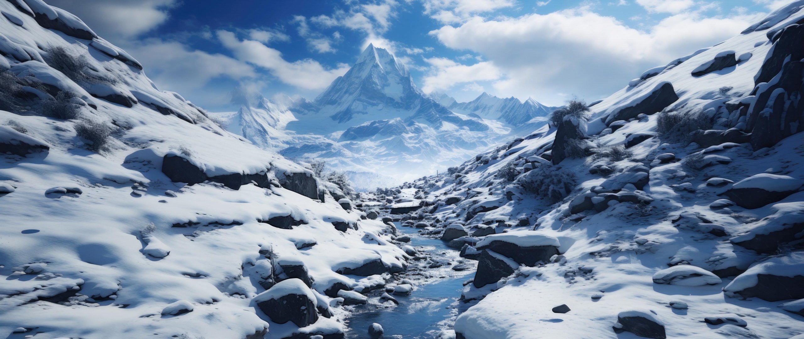 Wallpaper: mountains, snow, winter - 2560x1080