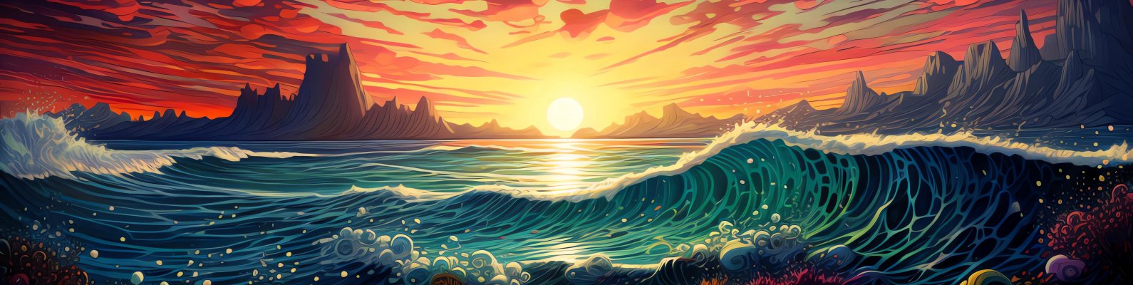 sunset at sea Wallpaper 1590x400