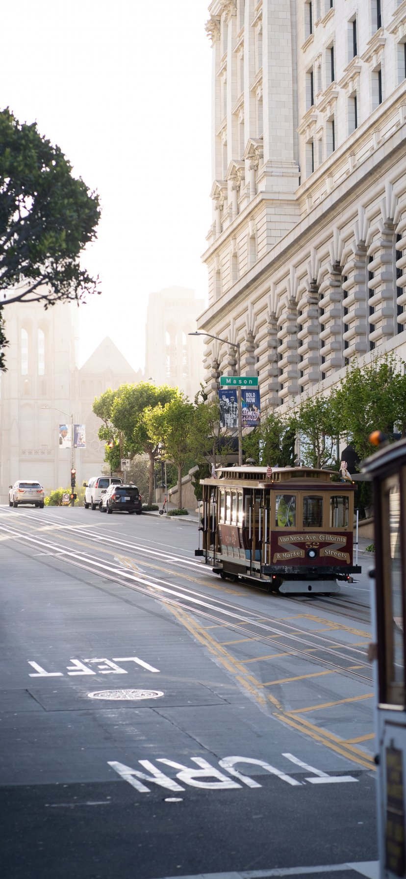 Wallpaper: San Francisco, tram, road, city - 828x1792
