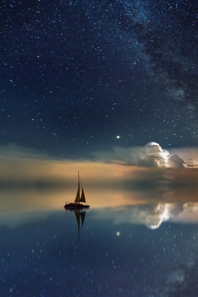 Wallpaper: ocean, starry sky, blue - 640x960