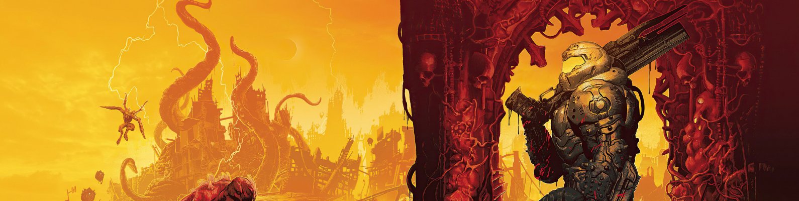 Wallpaper: DOOM, Executioner of Doom, orange - 1590x400
