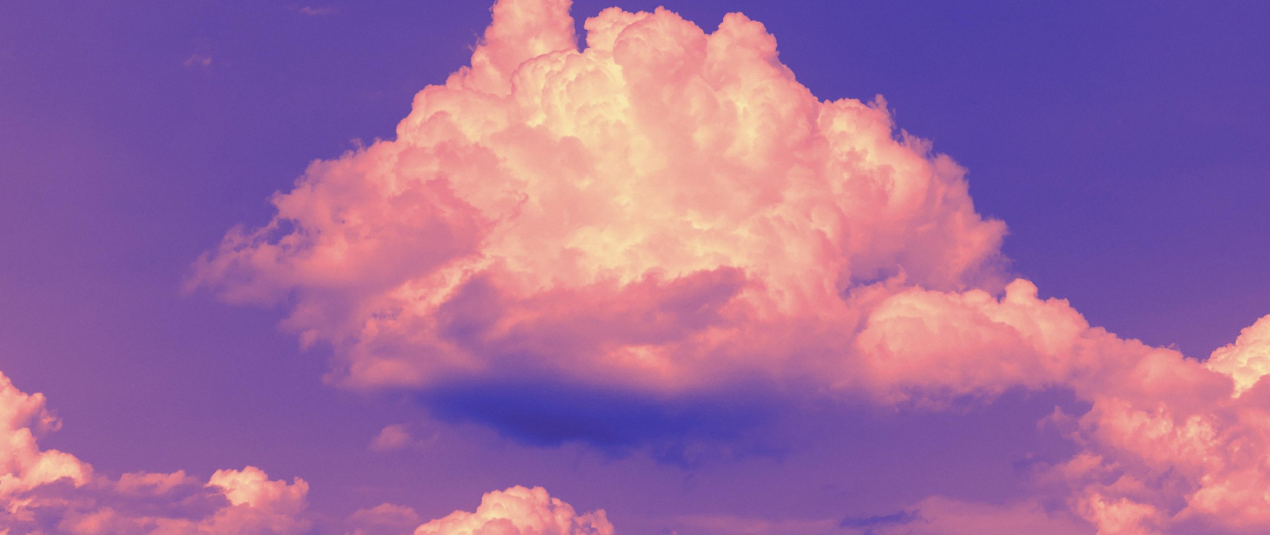 Wallpaper: purple sky, cumulus clouds, purple - 2560x1080