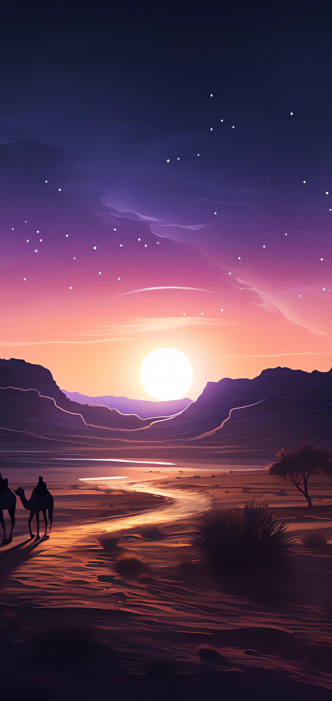 Wallpaper: night desert, sunset, dark - 1080x2280