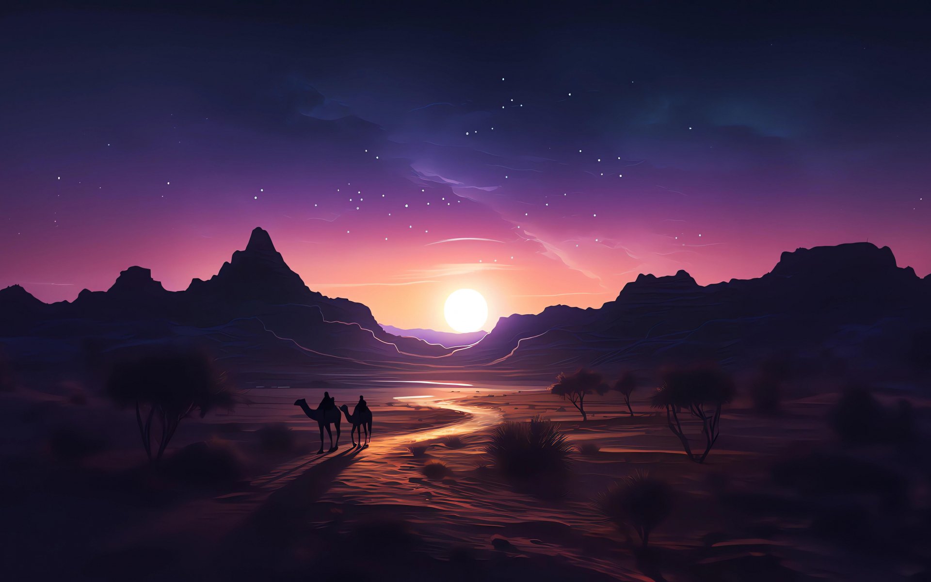 Wallpaper: night desert, sunset, dark - 1920x1200