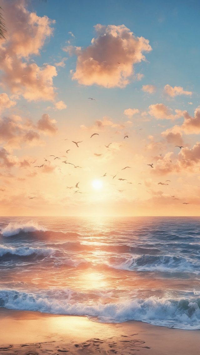 Wallpaper: sunrise, beach, sea - 640x1136