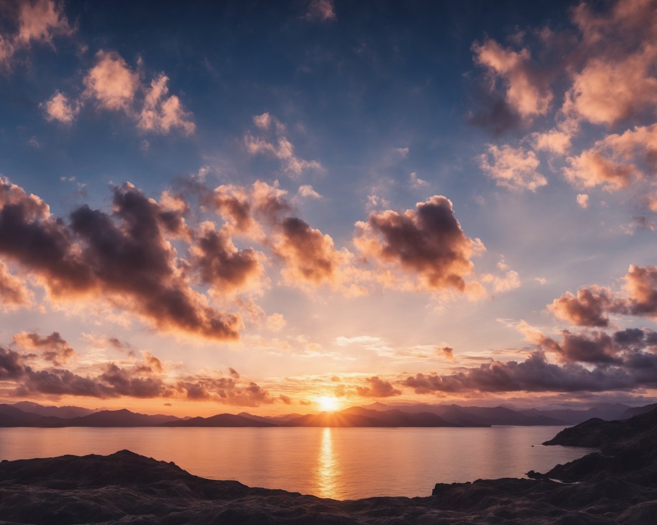 Wallpaper: sunrise, lake, landscape, clouds - 1280x1024