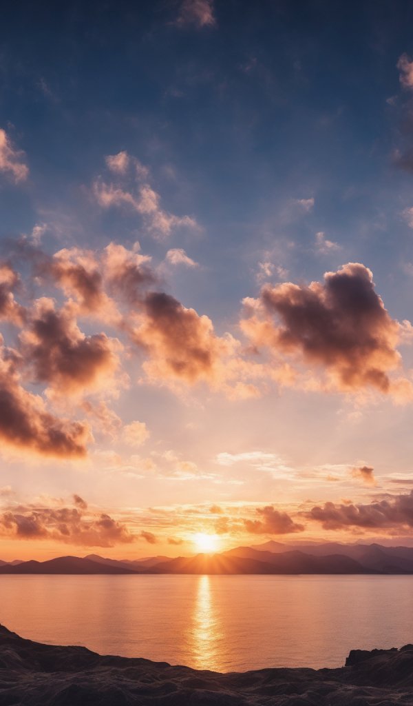 Wallpaper: sunrise, lake, landscape, clouds - 600x1024