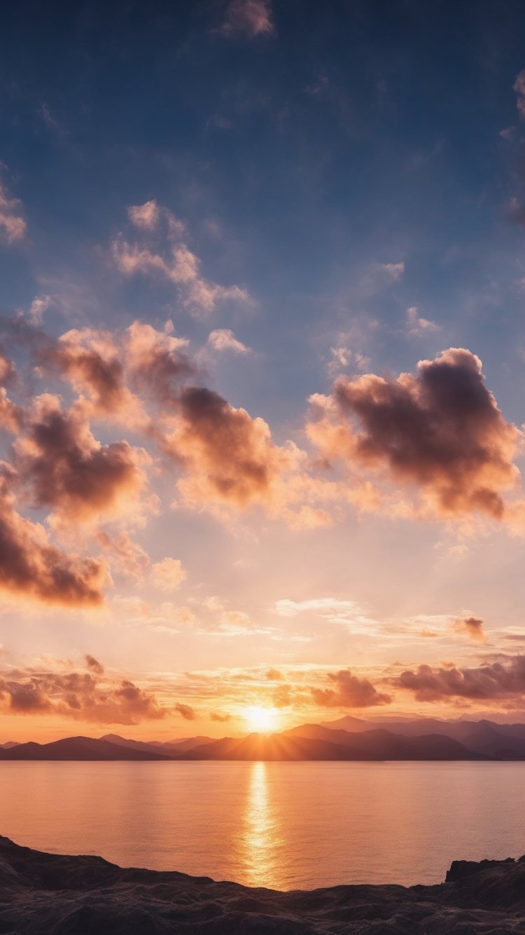 Wallpaper: sunrise, lake, landscape, clouds - 750x1334