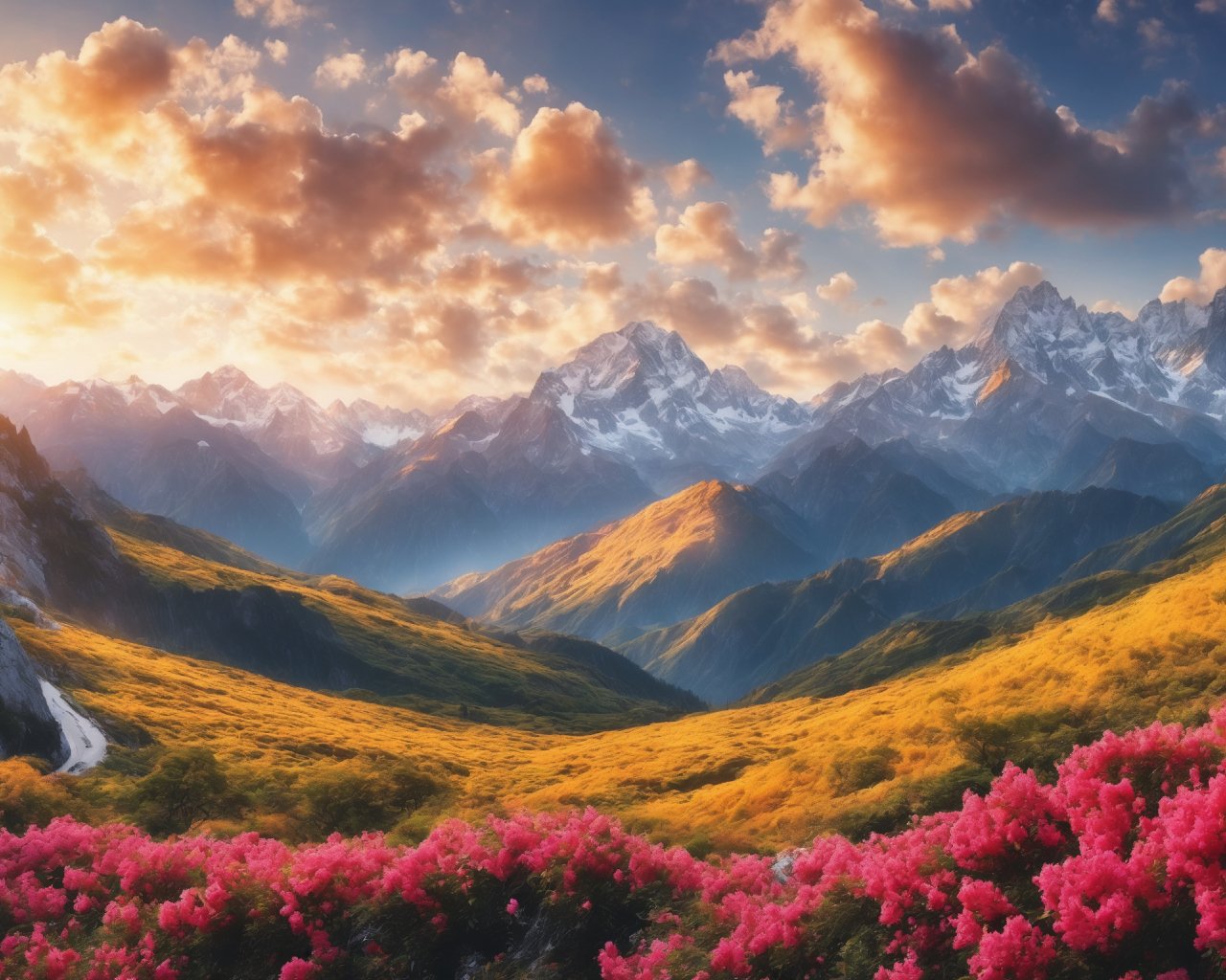 landscape, sunrise, mountains