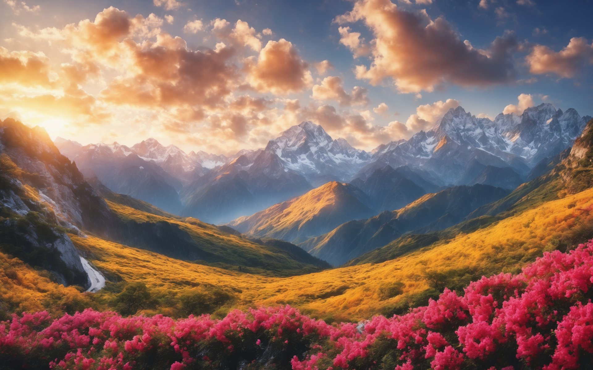 landscape, sunrise, mountains