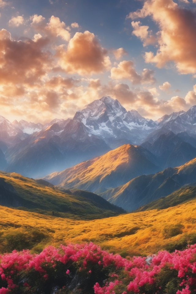 landscape, sunrise, mountains