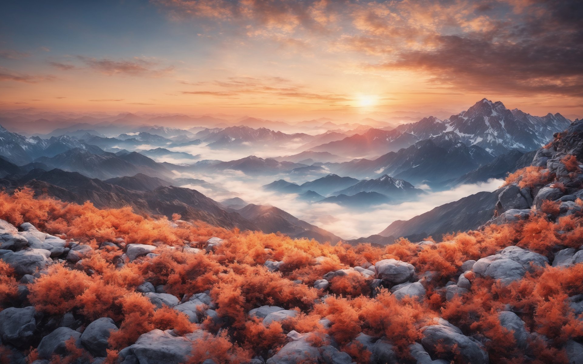 landscape, sunrise, mountains