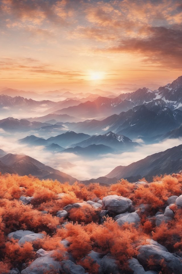 landscape, sunrise, mountains