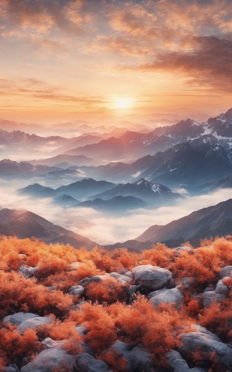 landscape, sunrise, mountains