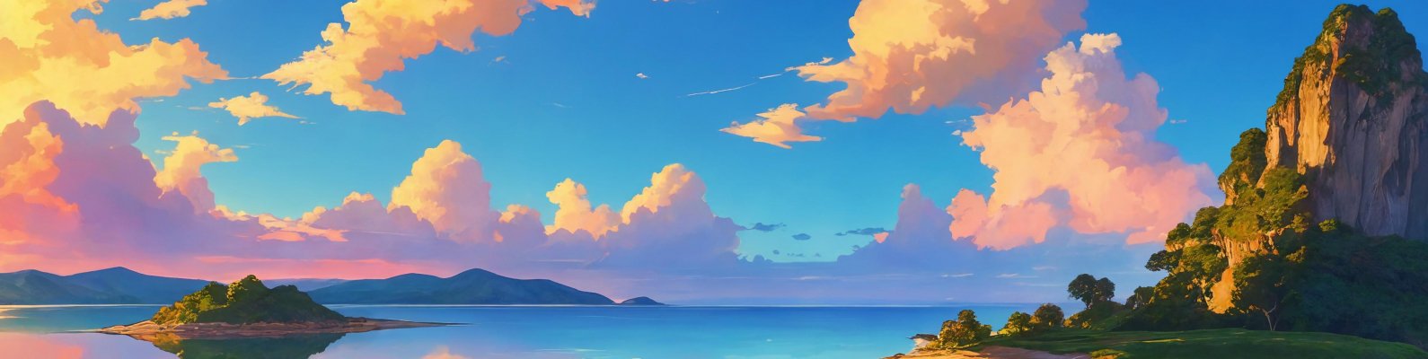 Wallpaper: landscape, island, sky, clouds - 1590x400