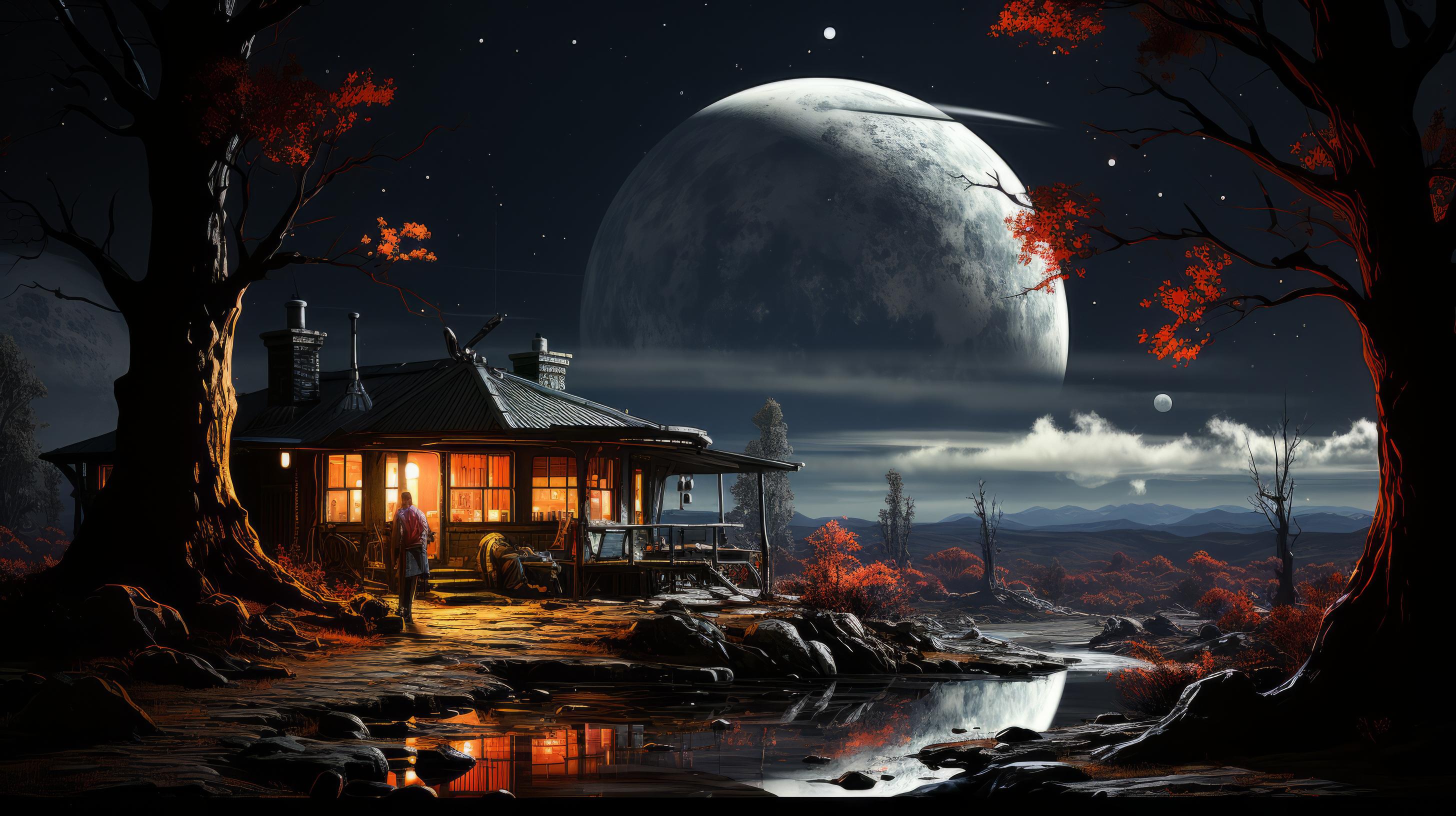 Wallpaper: Sci-fi, planet, cosmoart, night - 2912x1632