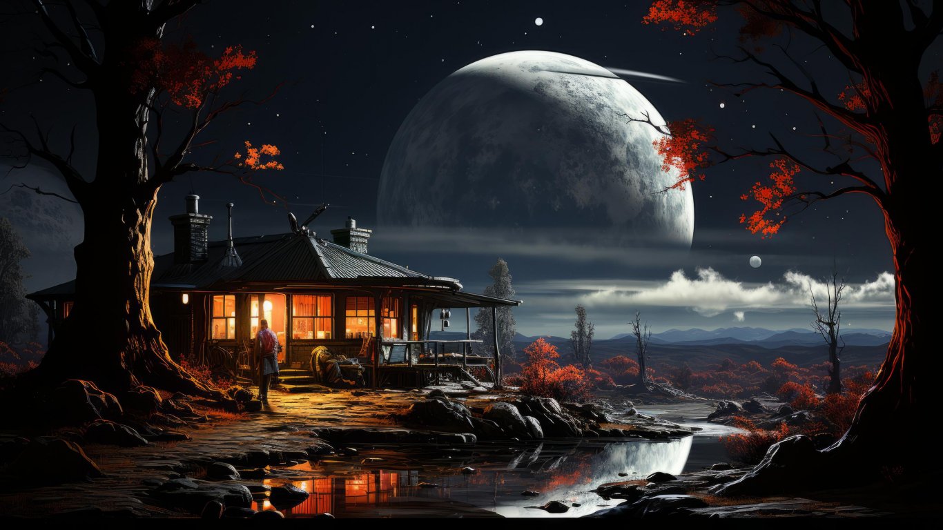 Wallpaper: Sci-fi, planet, cosmoart, night - 1366x768