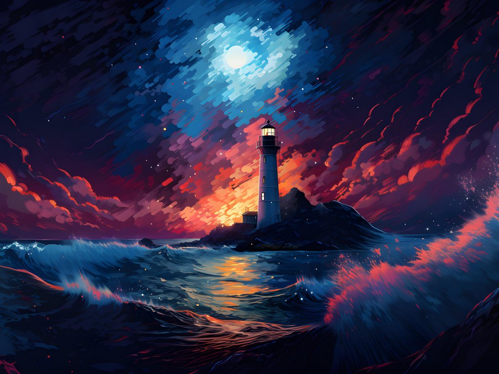 Wallpaper: lighthouse, storm, night, waves - 1024x768