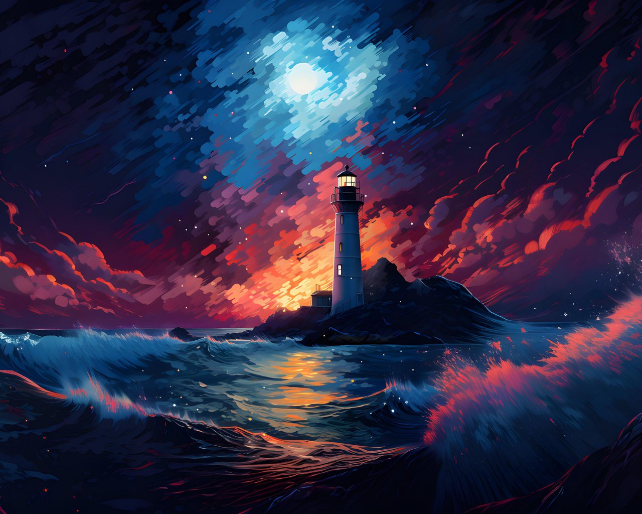 Wallpaper: lighthouse, storm, night, waves - 1280x1024