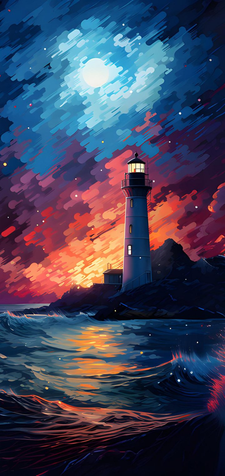 Wallpaper: lighthouse, storm, night, waves - 720x1520