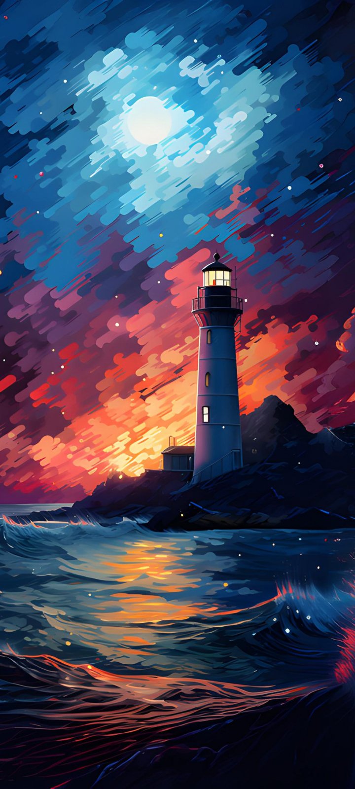 Wallpaper: lighthouse, storm, night, waves - 720x1600
