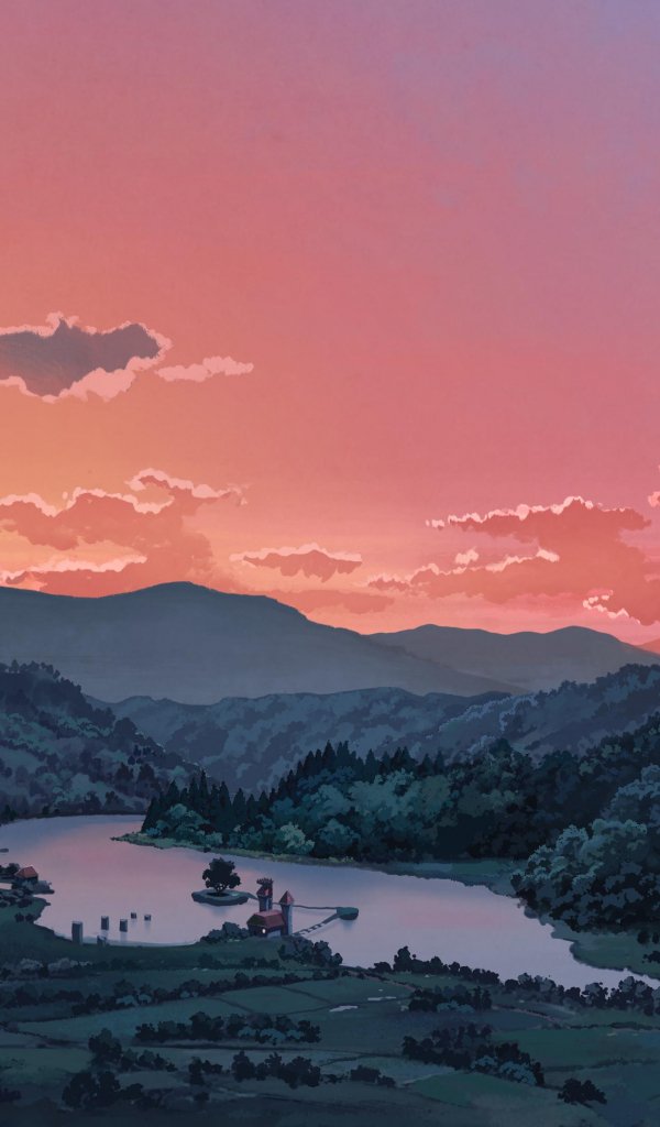 Wallpaper: landscape, valley, drawing - 600x1024