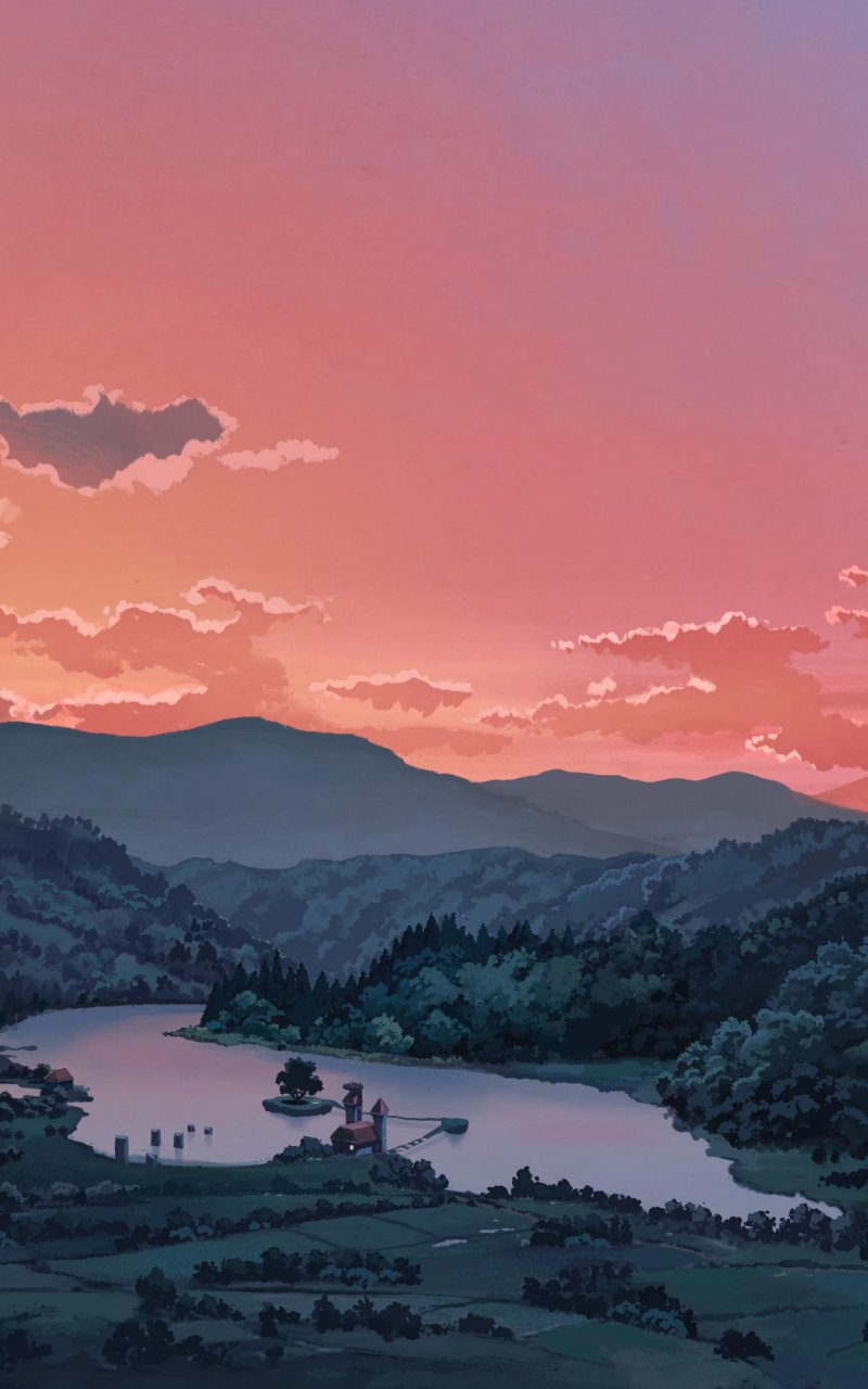 Wallpaper: landscape, valley, drawing - 800x1280