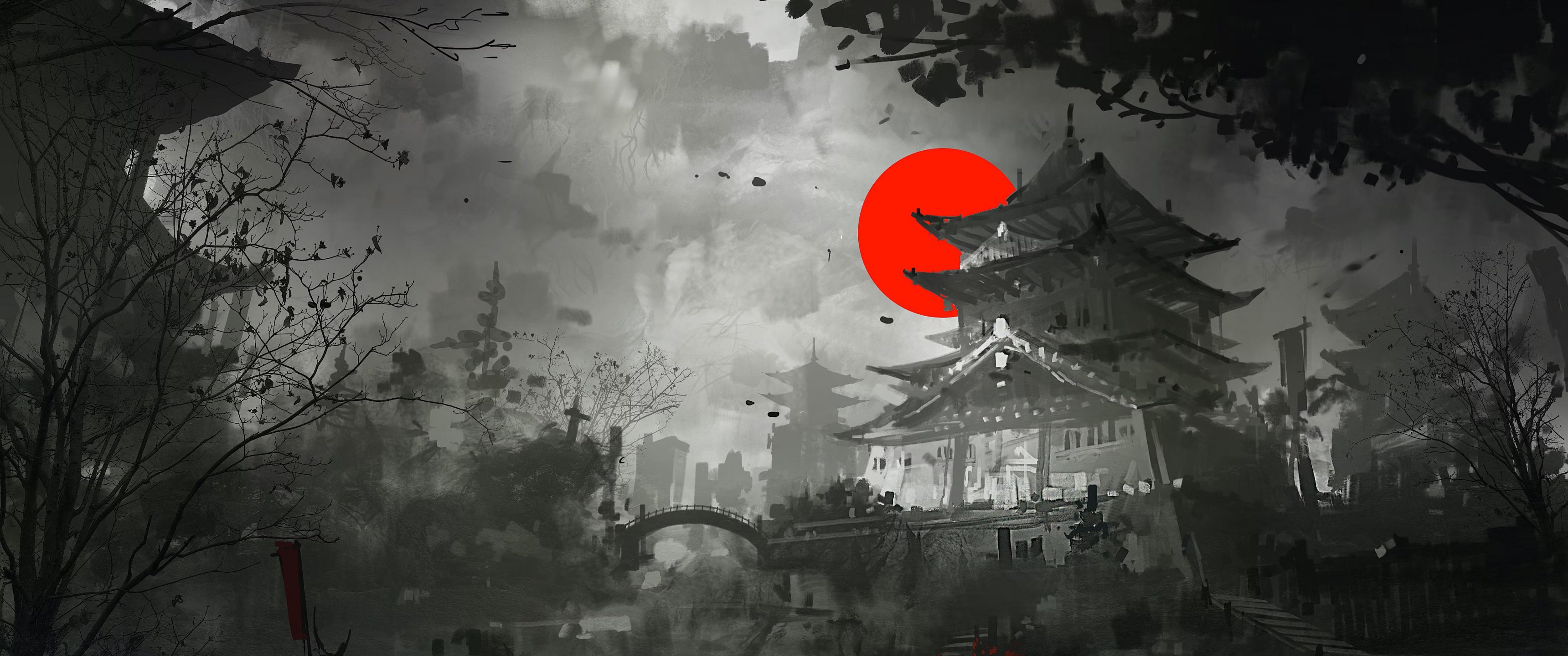 Wallpaper: figure, japan, grey, dark - 3440x1440