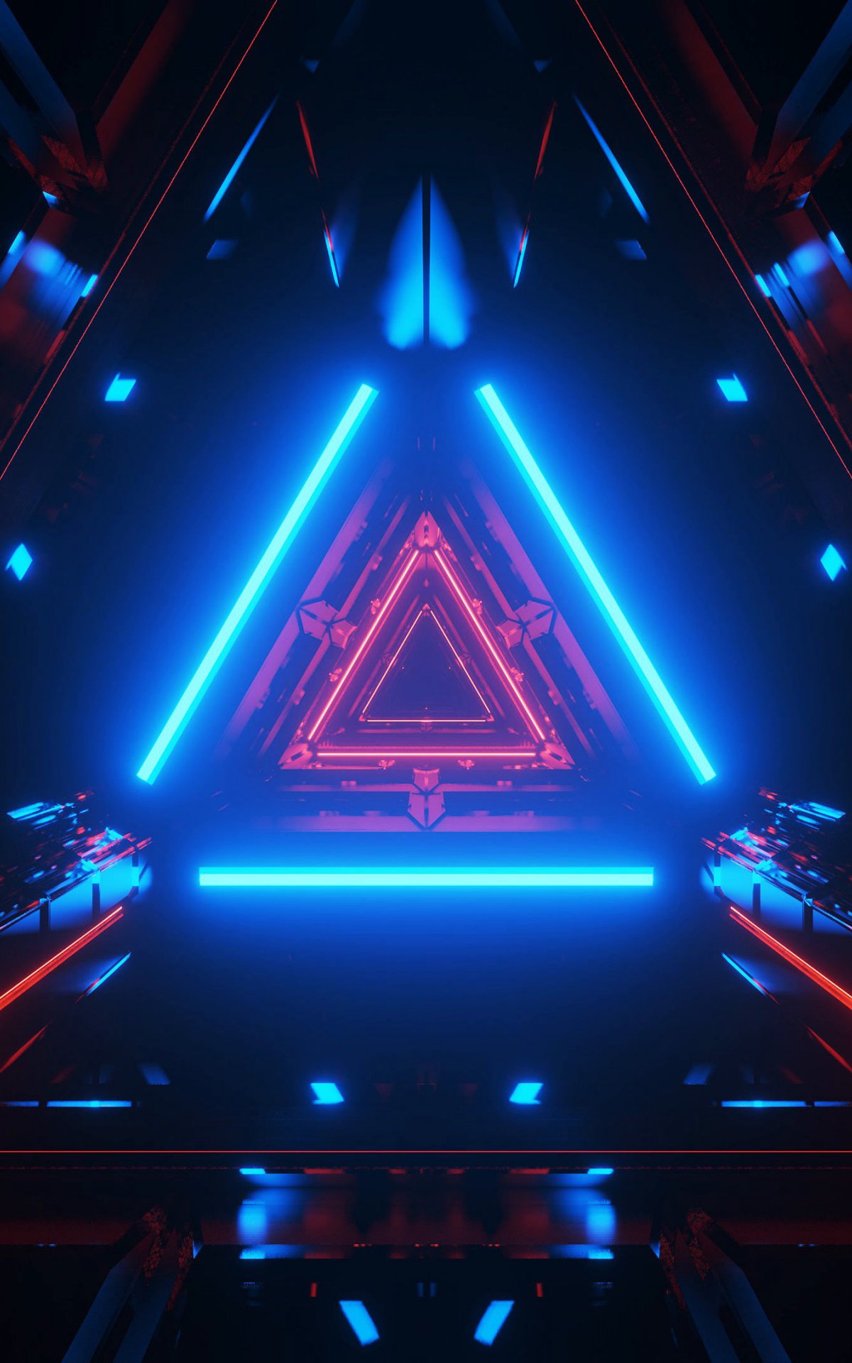 Wallpaper: neon, symmetry, abstraction, triangle - 1200x1920
