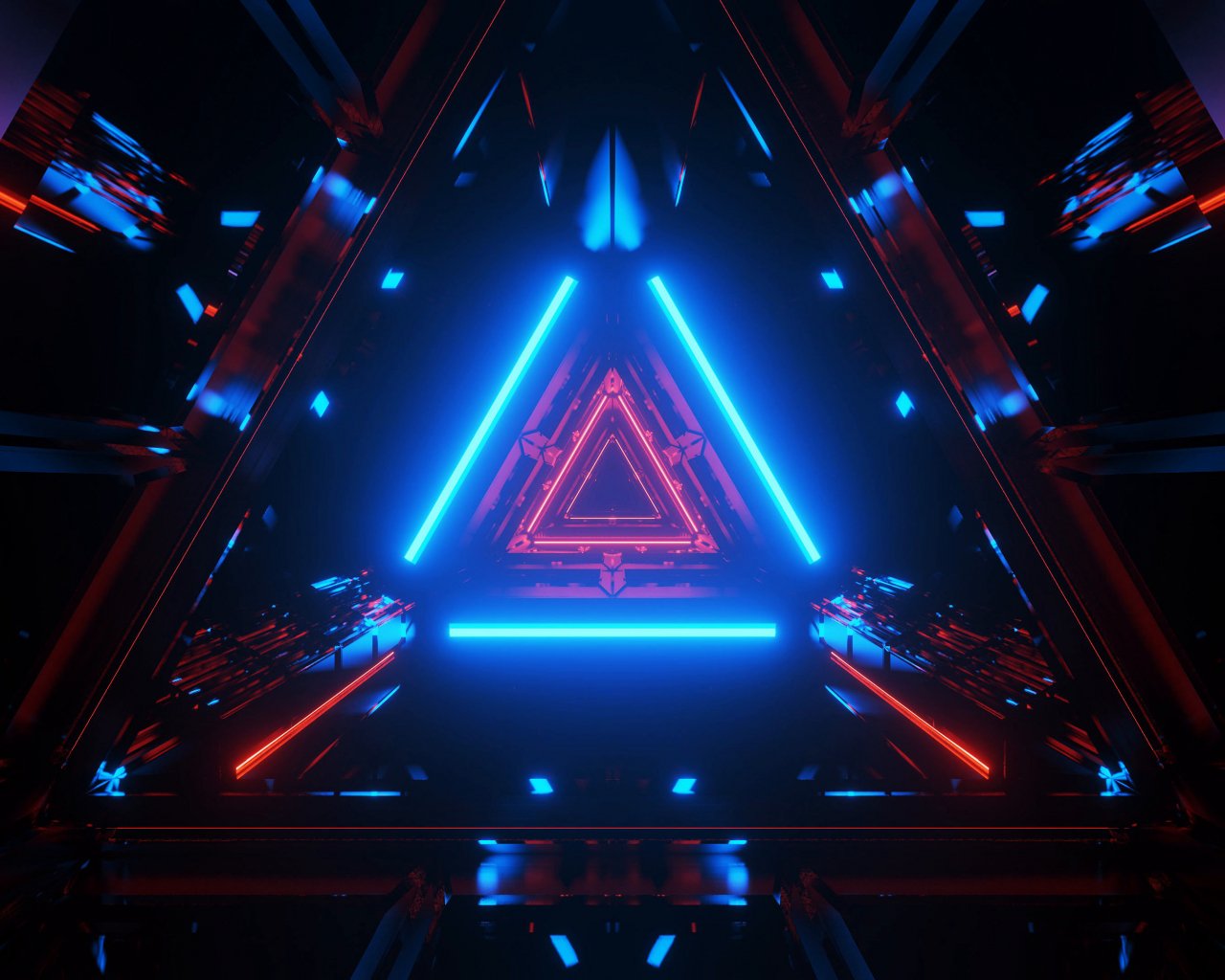 Wallpaper: neon, symmetry, abstraction, triangle - 1280x1024