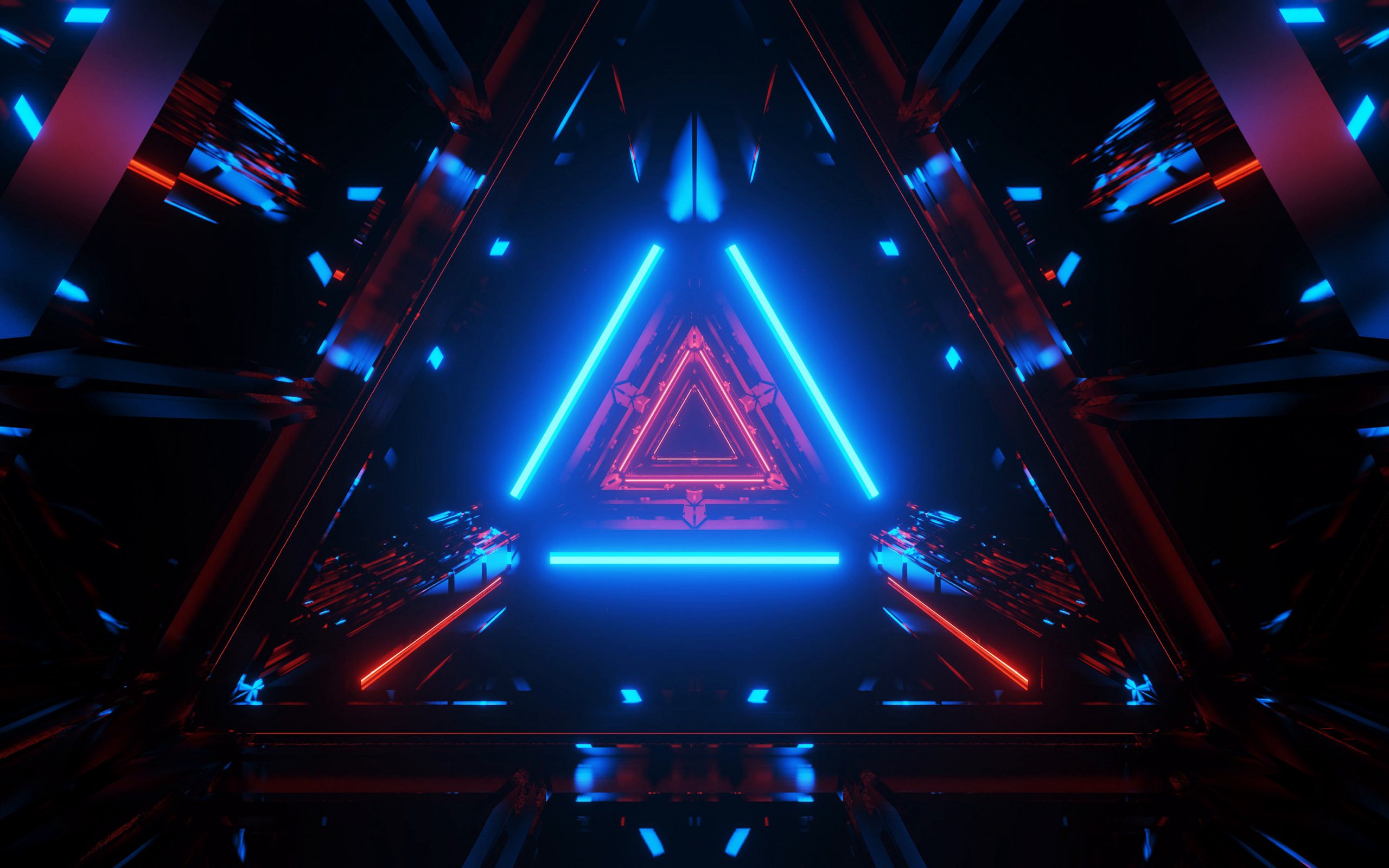 Wallpaper: neon, symmetry, abstraction, triangle - 2560x1600