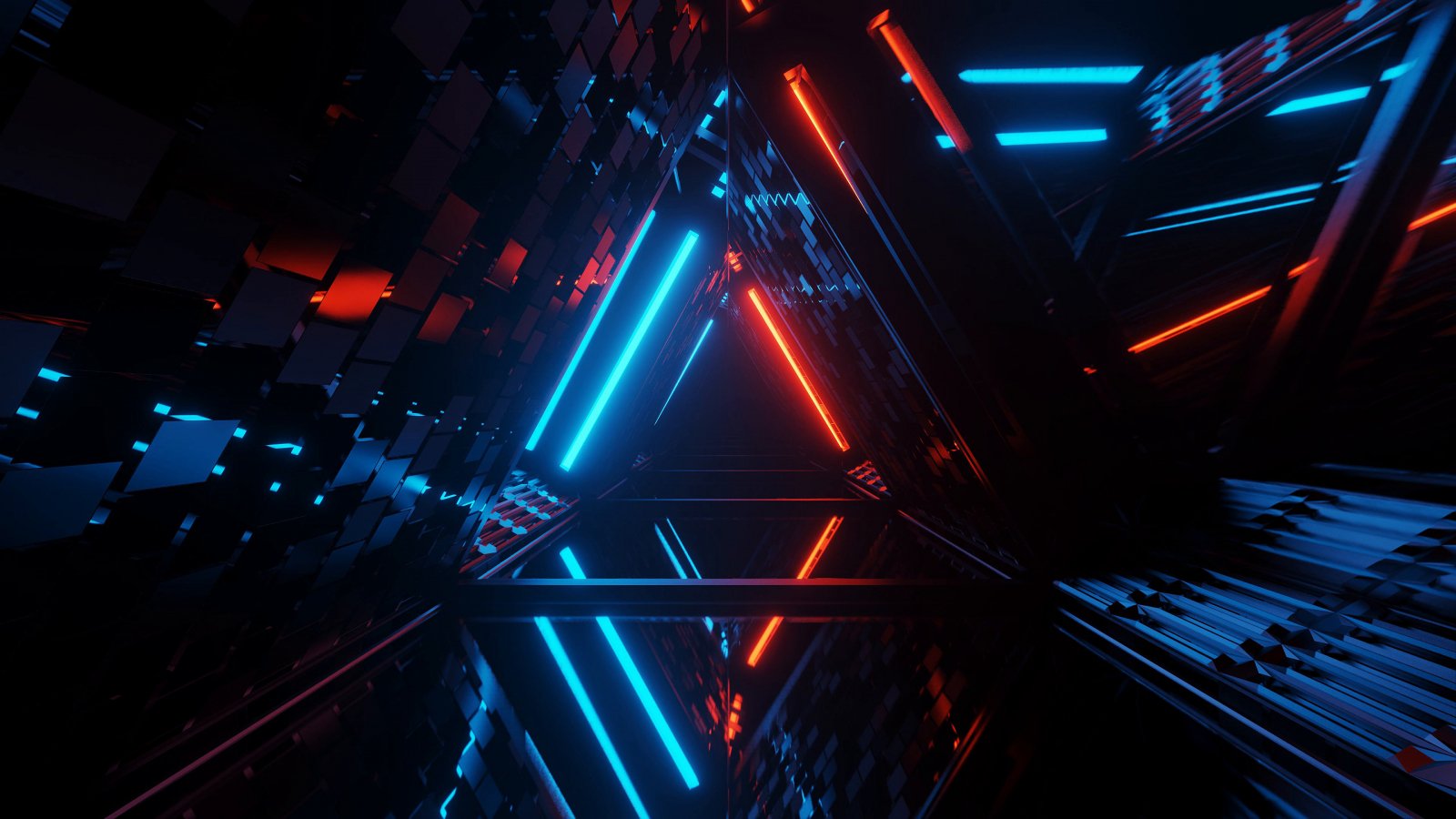 Wallpaper: neon, symmetry, abstraction, triangle - 1600x900