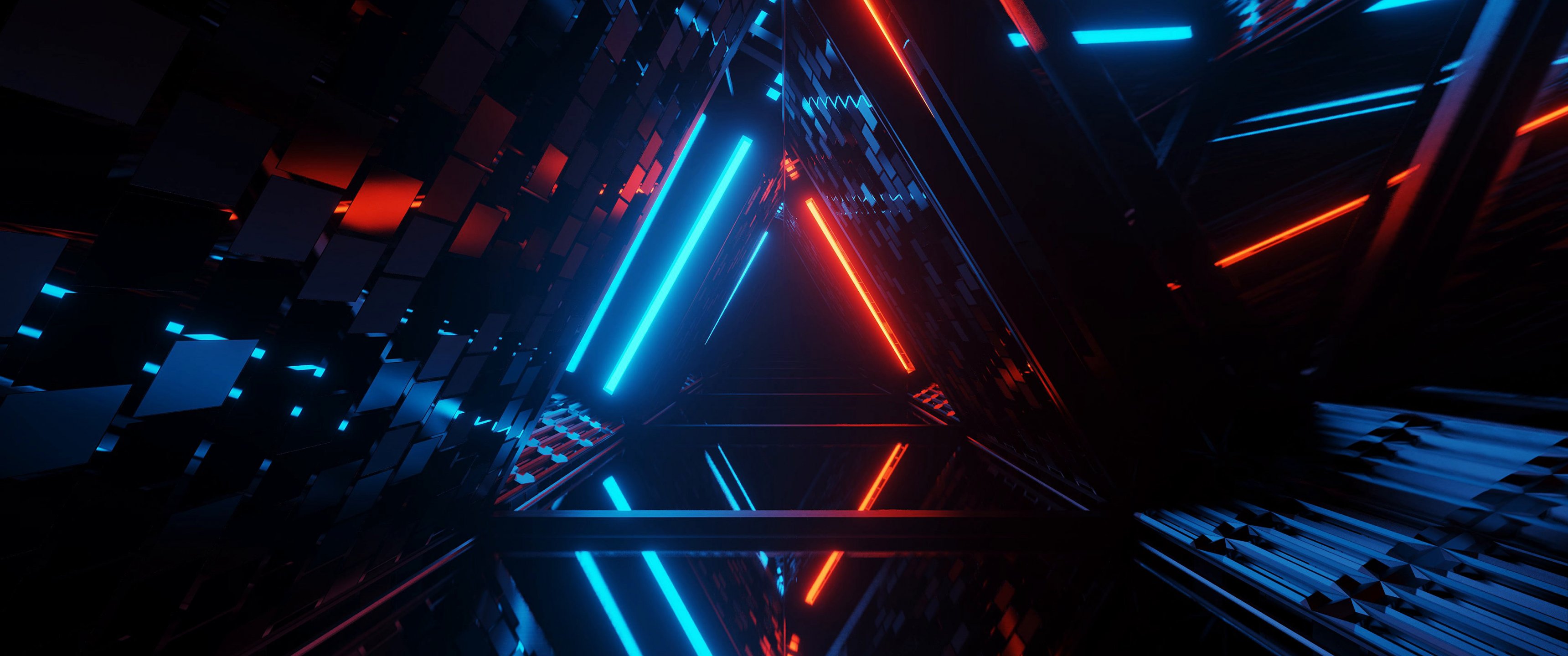 Wallpaper: neon, symmetry, abstraction, triangle - 3440x1440