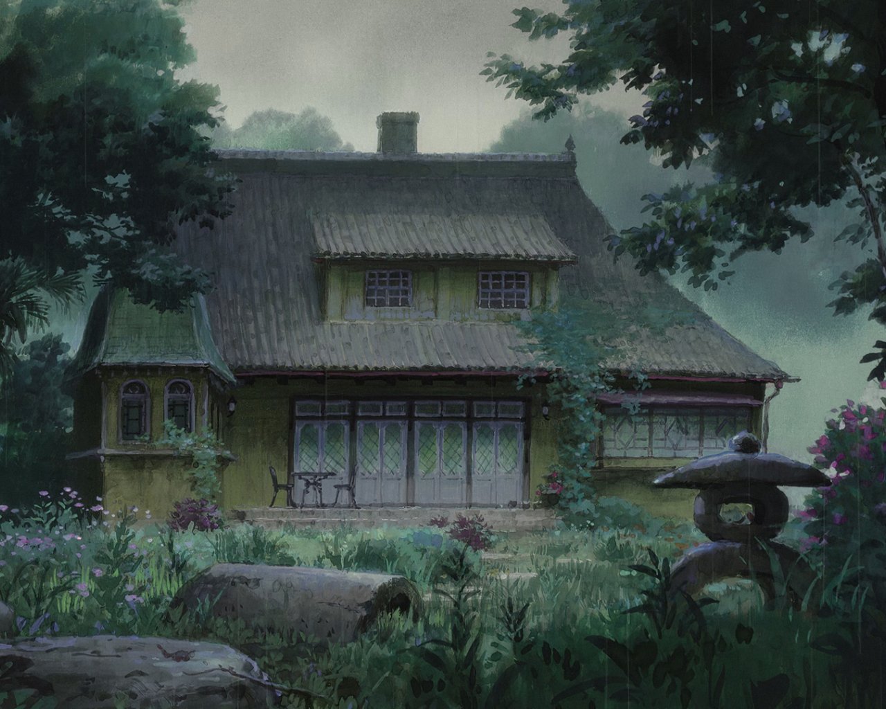Wallpaper: drawing, house in the forest, dark, gloomy - 1280x1024