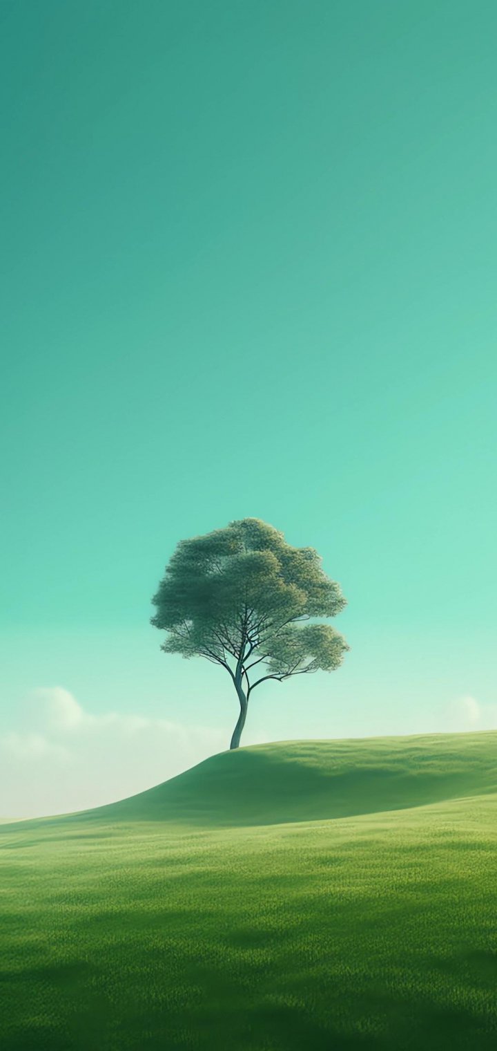 Wallpaper: lonely tree, landscape, green - 720x1520