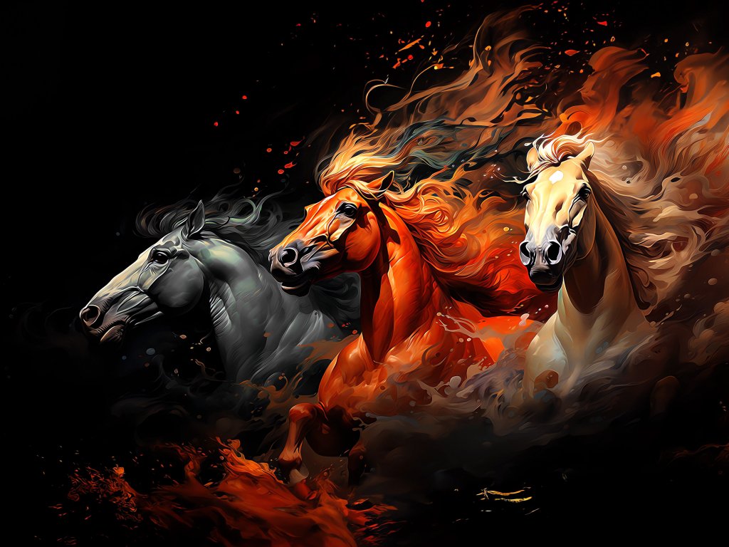Wallpaper: three horses, on a black background - 1024x768