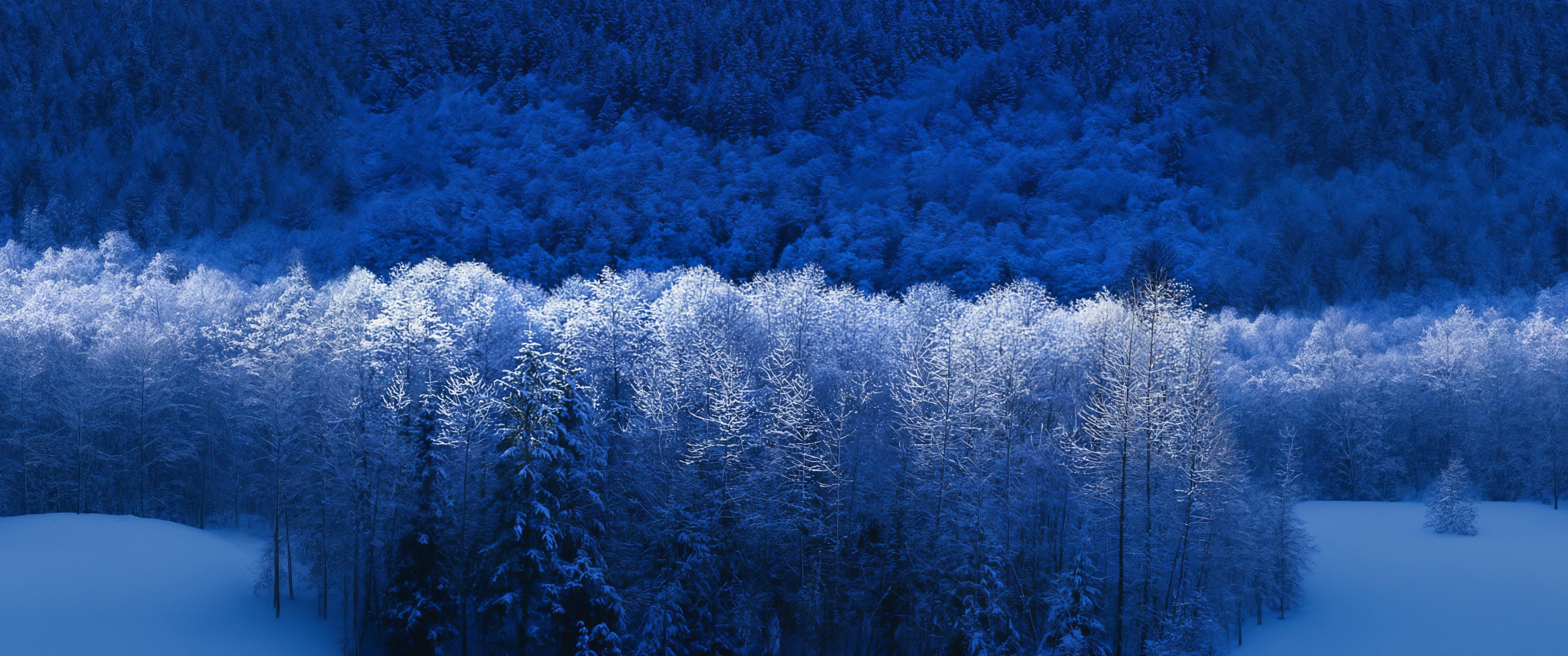 Wallpaper: Windows XP wallpaper, winter forest, blue - 3440x1440