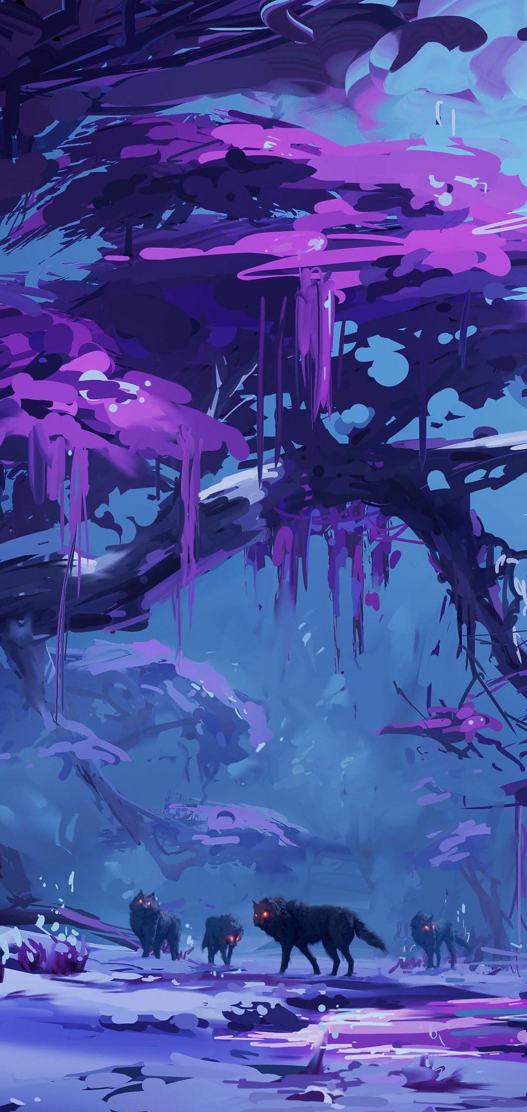 Wallpaper: purple, forest, fantasy - 1080x2280