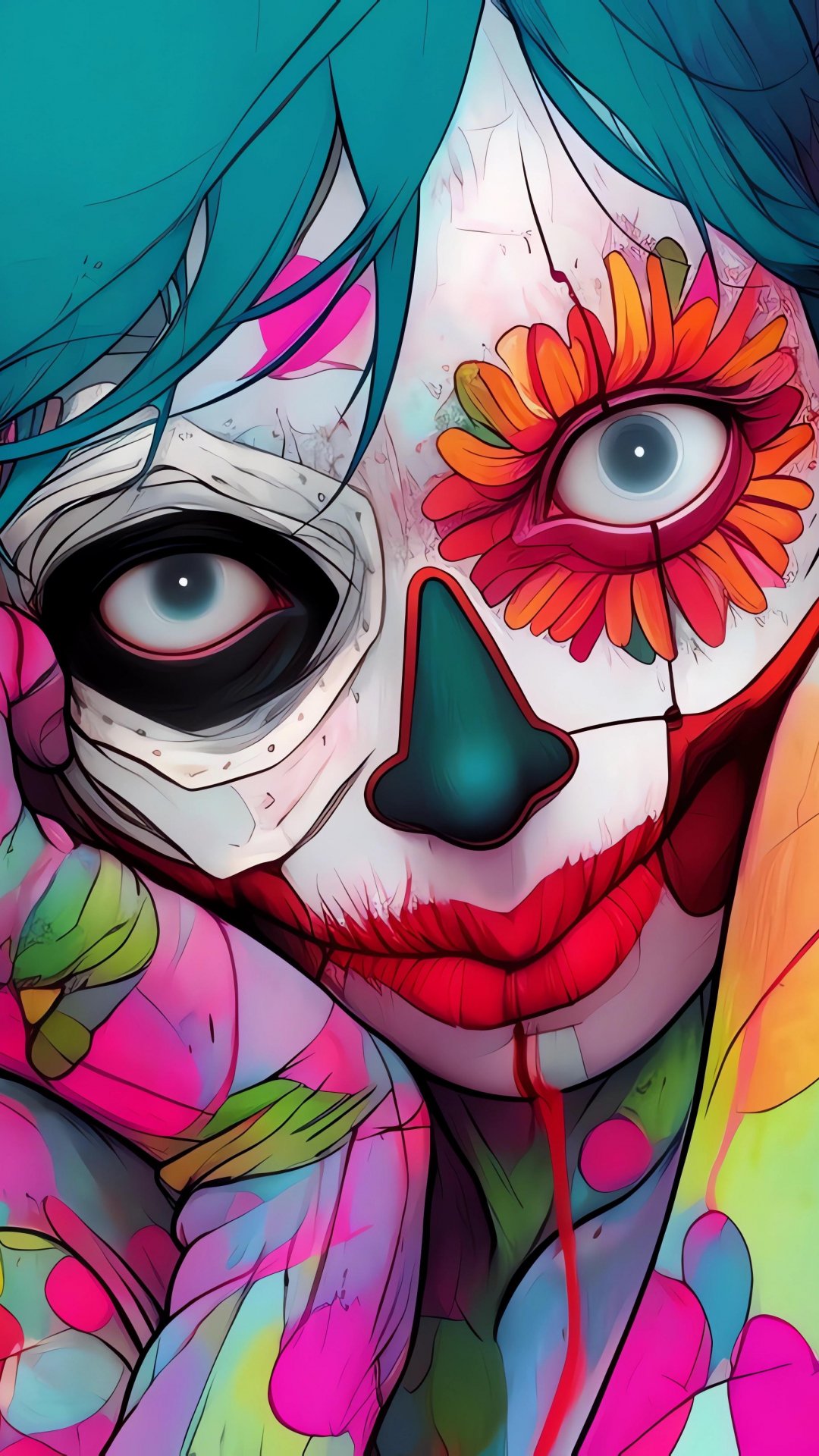 Wallpaper: girl, multicolored - 1080x1920